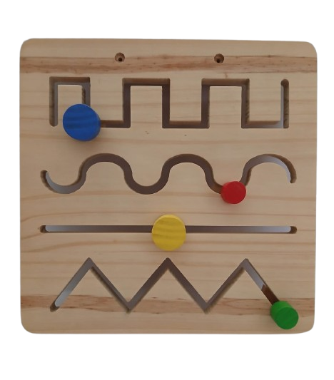 Consiste en un recorrido cuya meta es llevar las fichas de un extremo al otro, desplazándolas manualmente por el camino. Luego de cumplido el objetivo, se da vuelta comenzando nuevamente del otro lado. Ayuda a que el niño focalice su atención y desarrolle sus sentidos.